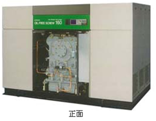 大型无油压缩机DSP132-240kW实现了风冷化。不但完全没有水管理作业,而且简便了空气冷却器、油冷却的清洁作业。新开发的风冷机专用的高效率主机,通过节能运转控制了压缩机的高水平的高效节能运转。